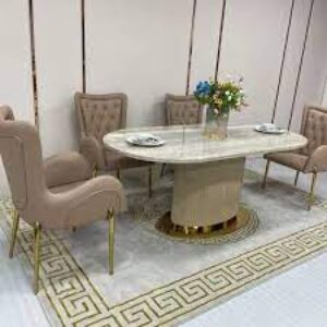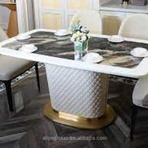 The Aurelia Marble-Top Pedestal Dining Table is a statement of modern luxury and craftsmanship. Featuring a sleek marble-finish rectangular tabletop, it offers a spacious and elegant surface for dining and gatherings. The distinctive quilted pedestal base adds a rich texture and contemporary charm, while the solid foundation ensures stability and durability. Perfect for modern and premium interiors, this table blends sophisticated design with everyday practicality.