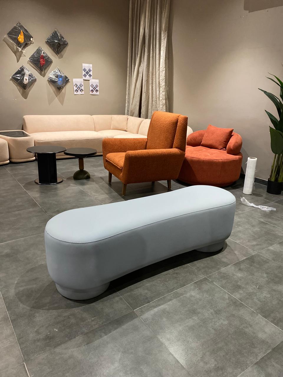 The Cloud Curve Bench is a modern statement piece designed with soft curves and a minimalist silhouette. Upholstered in premium fabric with a smooth, seamless finish, it offers both comfort and contemporary style. Its rounded edges and sturdy base create a unique sculptural look, making it perfect for living rooms, bedrooms, lounges, or luxury seating spaces. A blend of elegance and functionality, this bench adds a refined touch to any modern interior.