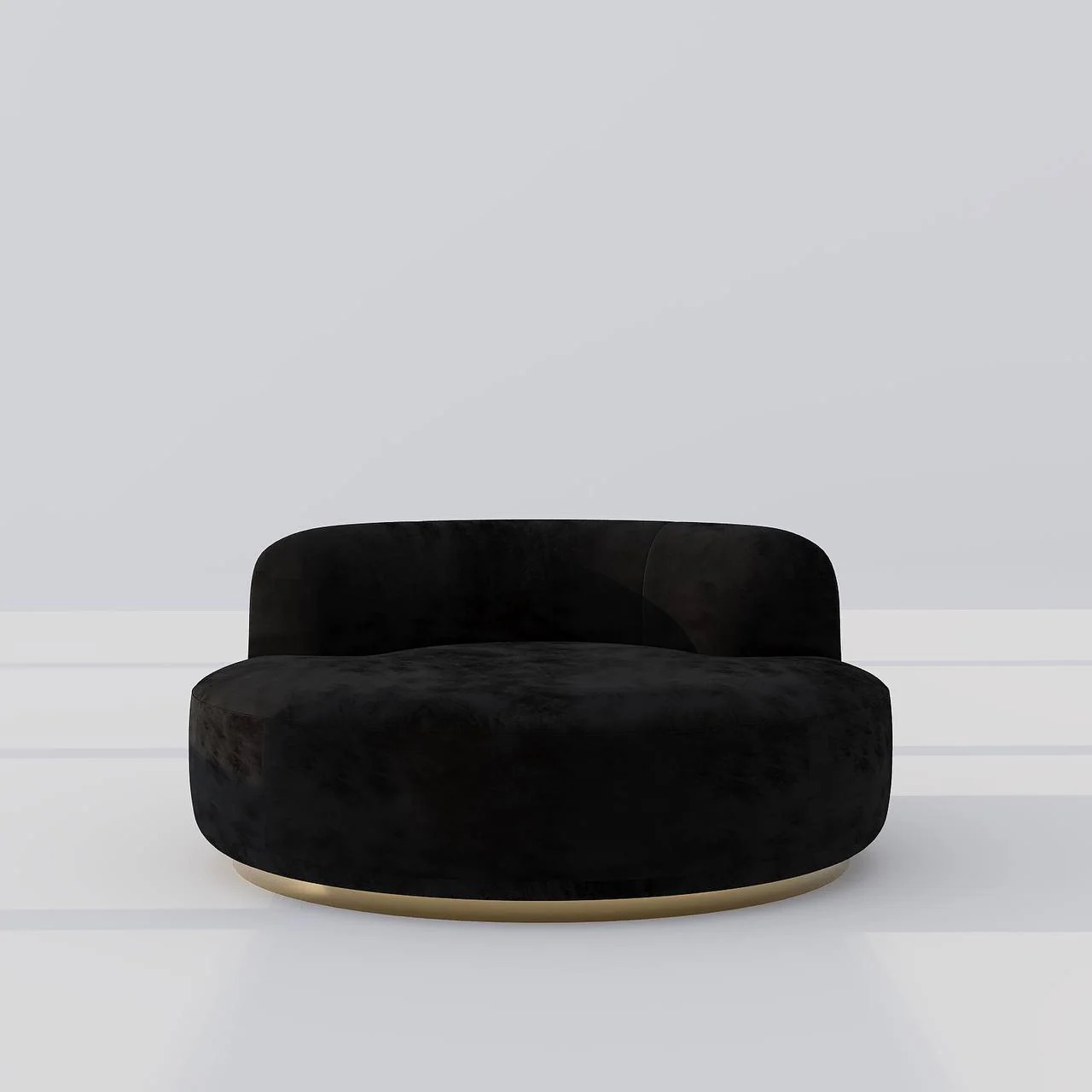 The Luna Curve Lounge Sofa is a statement piece designed for modern and luxury interiors. Featuring a bold, rounded silhouette with a low-profile backrest, this sofa offers a perfect blend of comfort and contemporary style. Upholstered in rich, soft-touch fabric, it provides a plush seating experience while maintaining a sleek, sculptural look. The subtle metallic base trim adds a refined accent and enhances durability. Ideal for living rooms, lounges, or boutique spaces, this sofa brings elegance, relaxation, and artistic charm to any setting.