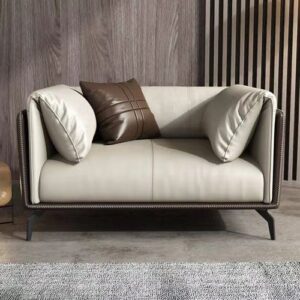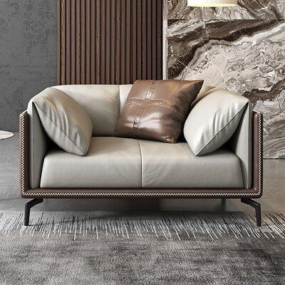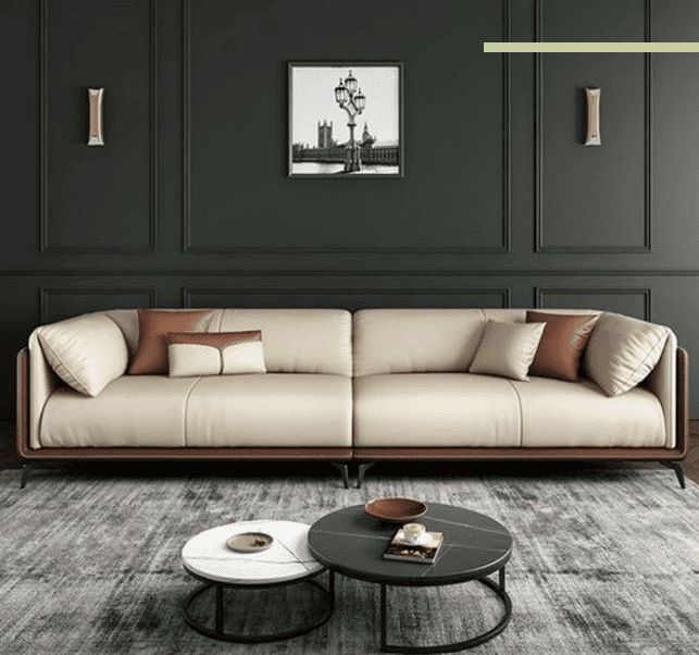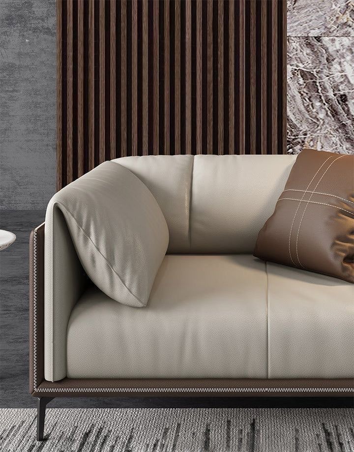 Introduce a touch of refined elegance to your living space or executive suite with this exquisitely tailored contemporary sofa. Designed with a striking dual-tone aesthetic, it features a sleek, dark architectural outer frame that perfectly cradles the plush, light-toned seating within.