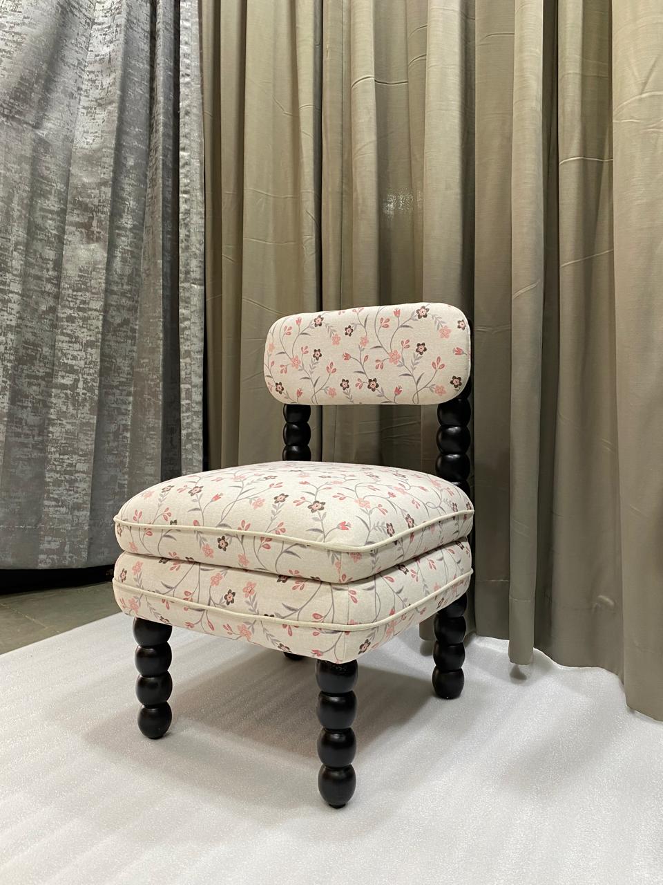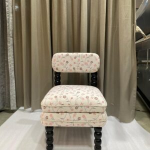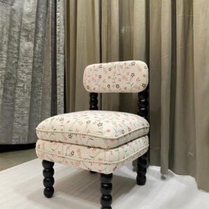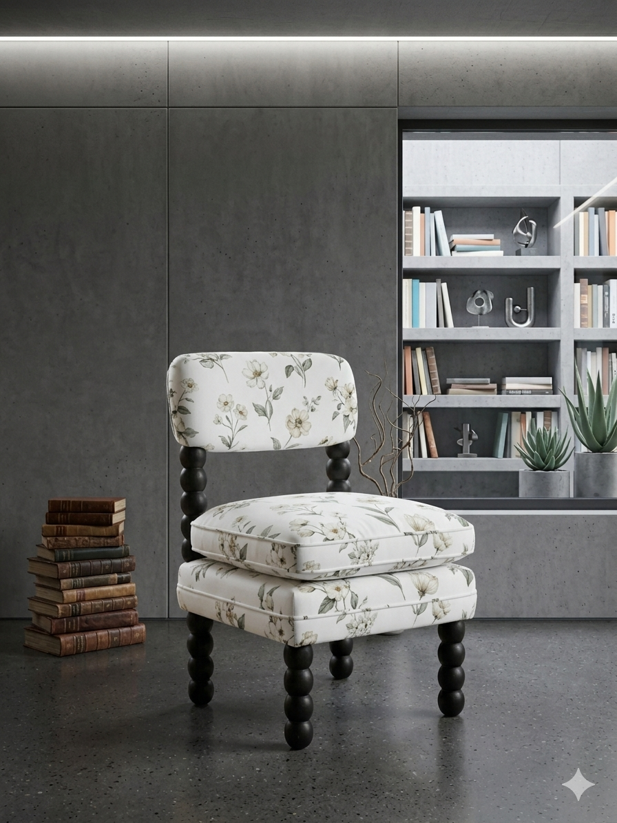 This accent chair is a beautiful fusion of traditional craftsmanship and modern botanical elegance. It is designed to serve as a high-end statement piece for a dressing room, vanity, or a curated living space.