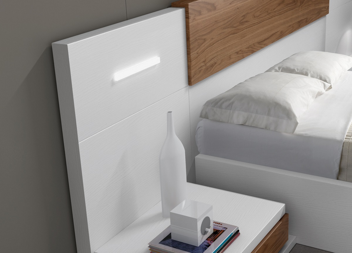 The Urban Elegance Wooden Panel Bed is a perfect blend of modern design and everyday comfort. Featuring a sleek white frame combined with warm wooden headboard panels, this bed adds a stylish and contemporary touch to any bedroom. The integrated headboard lights enhance functionality while creating a soft, ambient atmosphere. Built with a strong structure and premium finish, this bed is ideal for modern homes, master bedrooms, and luxury interiors.