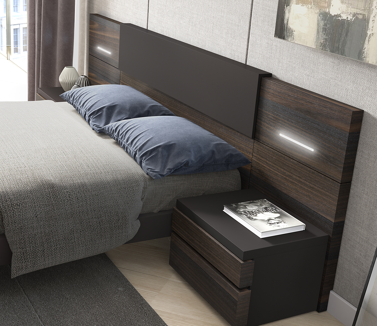 • Integrated Headboard Lighting: Soft LED lights for added comfort and style